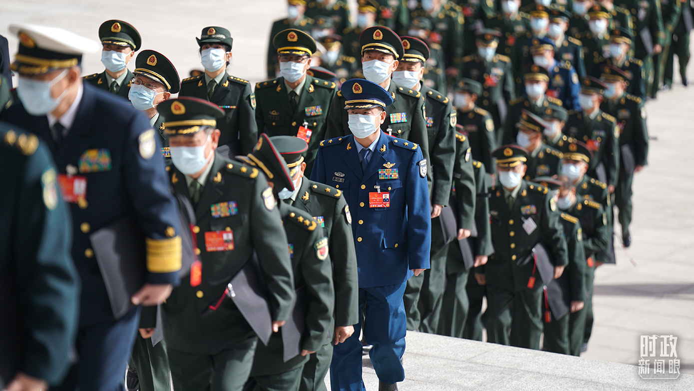△2022年3月4日,解放軍代表步入人民大會(huì)堂。(總臺(tái)國(guó)廣記者 李晉拍攝)