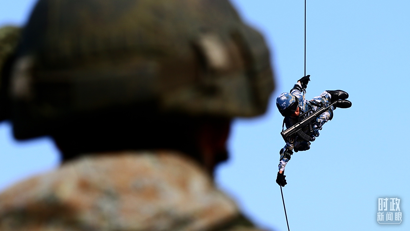 △2016年,廣東湛江某訓(xùn)練場(chǎng),中國(guó)陸戰(zhàn)隊(duì)員實(shí)施高空滑降。(總臺(tái)國(guó)廣記者李晉拍攝)