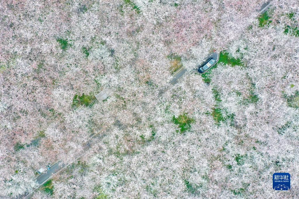 這是3月17日拍攝的貴安新區(qū)櫻花園(無(wú)人機(jī)照片)?!⌒氯A社記者 歐東衢 攝