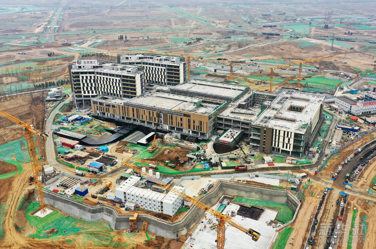 這是雄安新區(qū)首家三甲醫(yī)院——首都醫(yī)科大學(xué)宣武醫(yī)院雄安院區(qū)項(xiàng)目建設(shè)施工現(xiàn)場(chǎng)(無(wú)人機(jī)照片,2022年3月29日攝)。該工程由北京市援建,總建筑面積12.2萬(wàn)平方米,包括門(mén)診樓、醫(yī)技樓、住院樓、科研樓等,主體結(jié)構(gòu)于2021年8月封頂,建成后將成為擁有600張床位的獨(dú)立運(yùn)行三級(jí)甲等醫(yī)院。