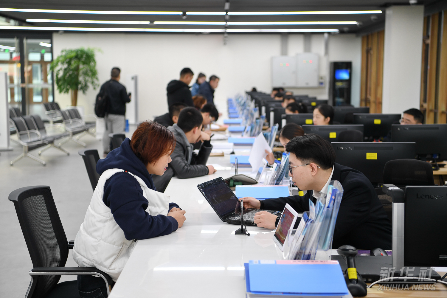 群眾在雄安市民服務(wù)中心內(nèi)辦理業(yè)務(wù)(2019年1月17日攝)。2021年,雄安新區(qū)提出“一窗受理、一網(wǎng)通辦、一次辦結(jié)、一枚印章管到底”的“四個(gè)一”審批模式,推動(dòng)技術(shù)、人才、資金等要素資源集聚。