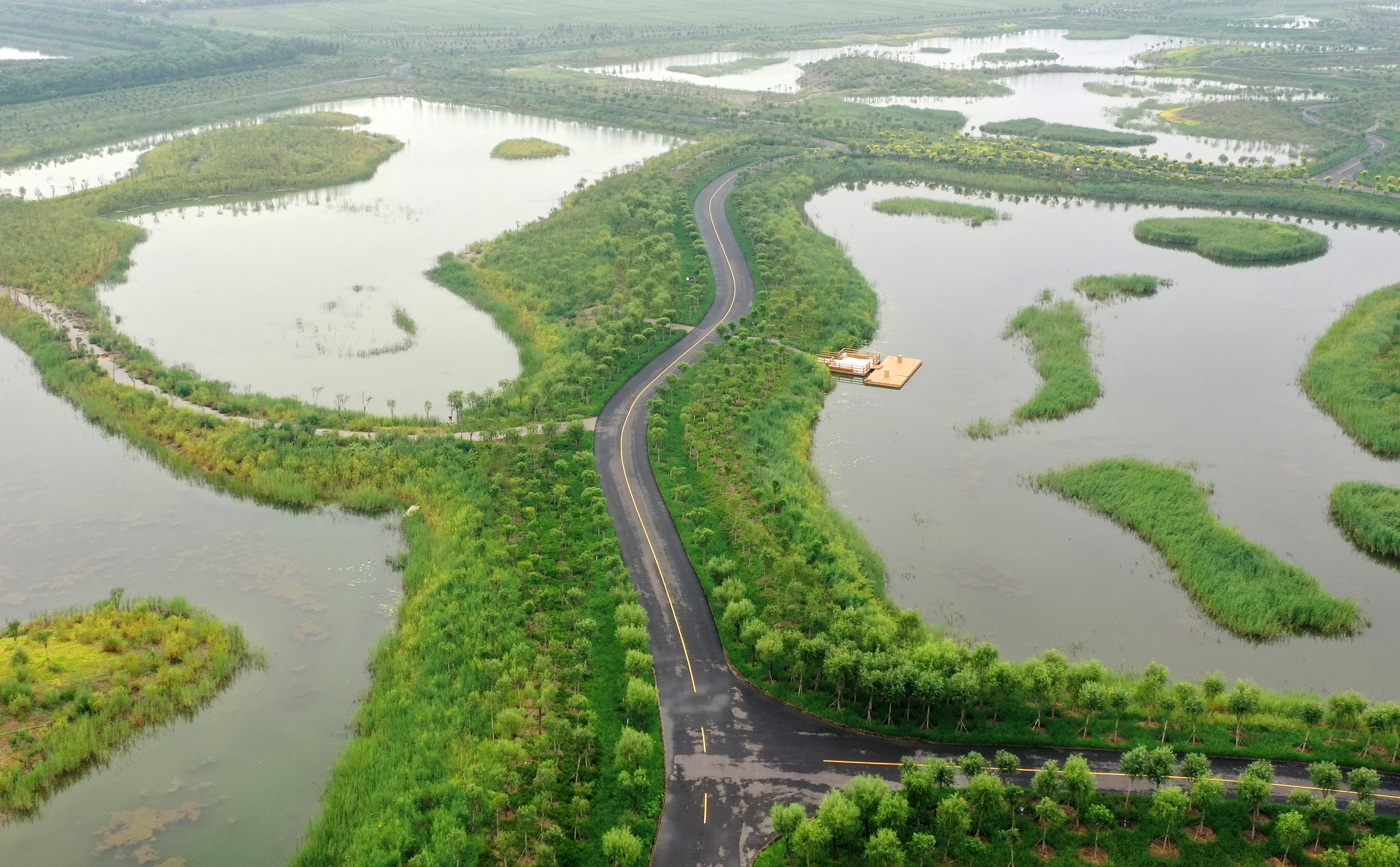 天津西青生態(tài)廊道一景(2021年8月16日攝,無人機(jī)照片)。新華社記者 李然 攝