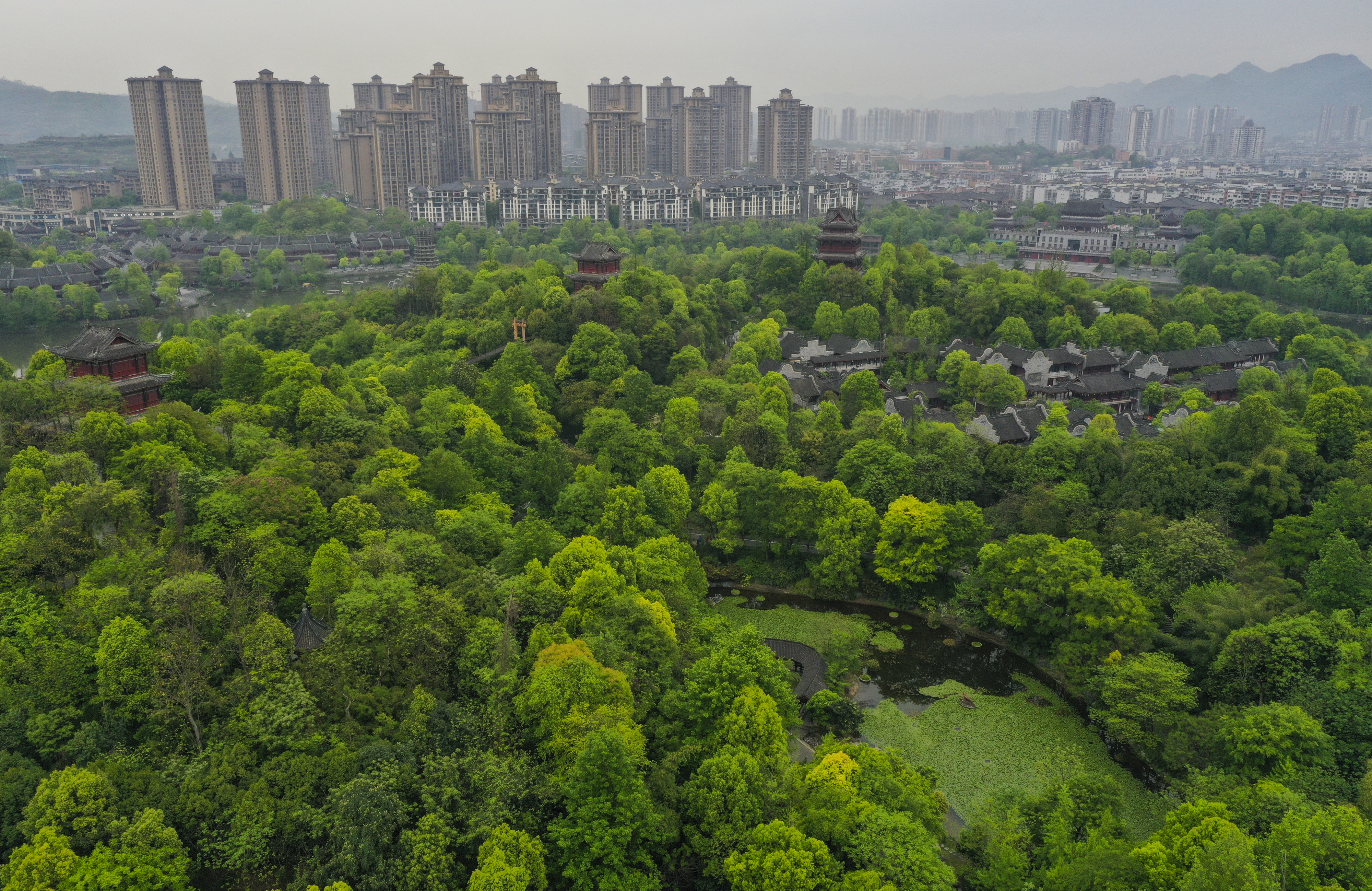 重慶璧山秀湖濕地公園景色(3月29日攝,無人機(jī)照片)。新華社記者 王全超 攝