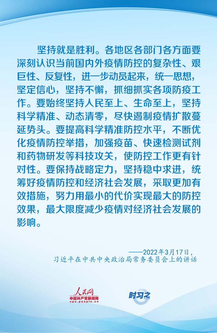 “要始終堅(jiān)持人民至上、生命至上,堅(jiān)持科學(xué)精準(zhǔn)、動(dòng)態(tài)清零,盡快遏制疫情擴(kuò)散蔓延勢(shì)頭”。面對(duì)新冠肺炎疫情的跌宕反復(fù),習(xí)近平總書(shū)記親自指揮、親自部署,以科學(xué)之策應(yīng)對(duì)非常之難。今年以來(lái),如何打好疫情防控和經(jīng)濟(jì)社會(huì)發(fā)展之戰(zhàn),習(xí)近平作出重要部署。