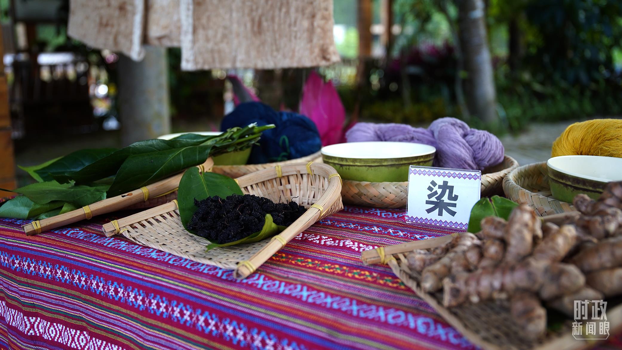 △制作黎錦的染料及來源。(總臺央廣記者潘毅拍攝)