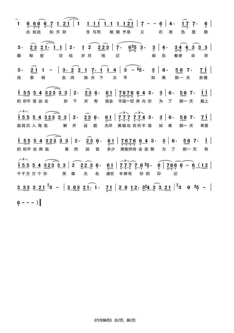 慶祝建黨百年獲獎(jiǎng)歌曲作品選集——《英雄無名》歌詞。