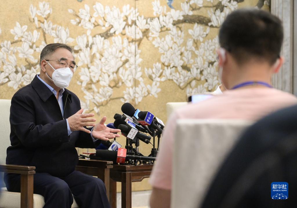 中國(guó)工程院院士、天津中醫(yī)藥大學(xué)名譽(yù)校長(zhǎng)張伯禮在上海接受記者采訪(4月24日攝)。新華社記者 李賀 攝