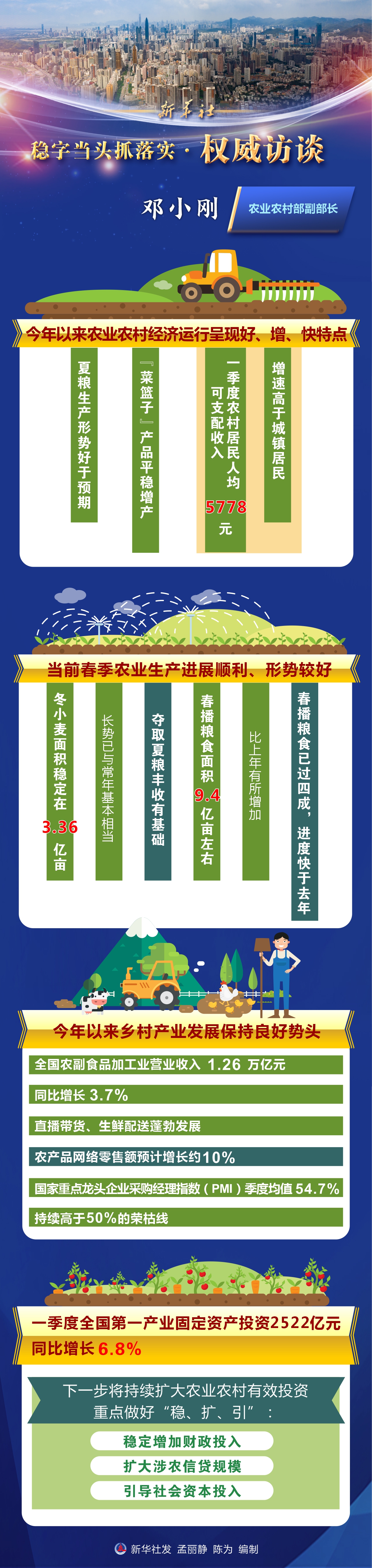 今年以來(lái),新冠肺炎疫情和地區(qū)沖突導(dǎo)致風(fēng)險(xiǎn)挑戰(zhàn)增多,我國(guó)經(jīng)濟(jì)發(fā)展環(huán)境的復(fù)雜性上升。能否夯實(shí)“三農(nóng)”壓艙石,對(duì)經(jīng)濟(jì)社會(huì)大局至關(guān)重要。今年糧食安全有保障嗎?農(nóng)民增收如何實(shí)現(xiàn)?脫貧攻堅(jiān)成果怎樣鞏固???農(nóng)業(yè)農(nóng)村部副部長(zhǎng)鄧小剛接受了新華社記者采訪。