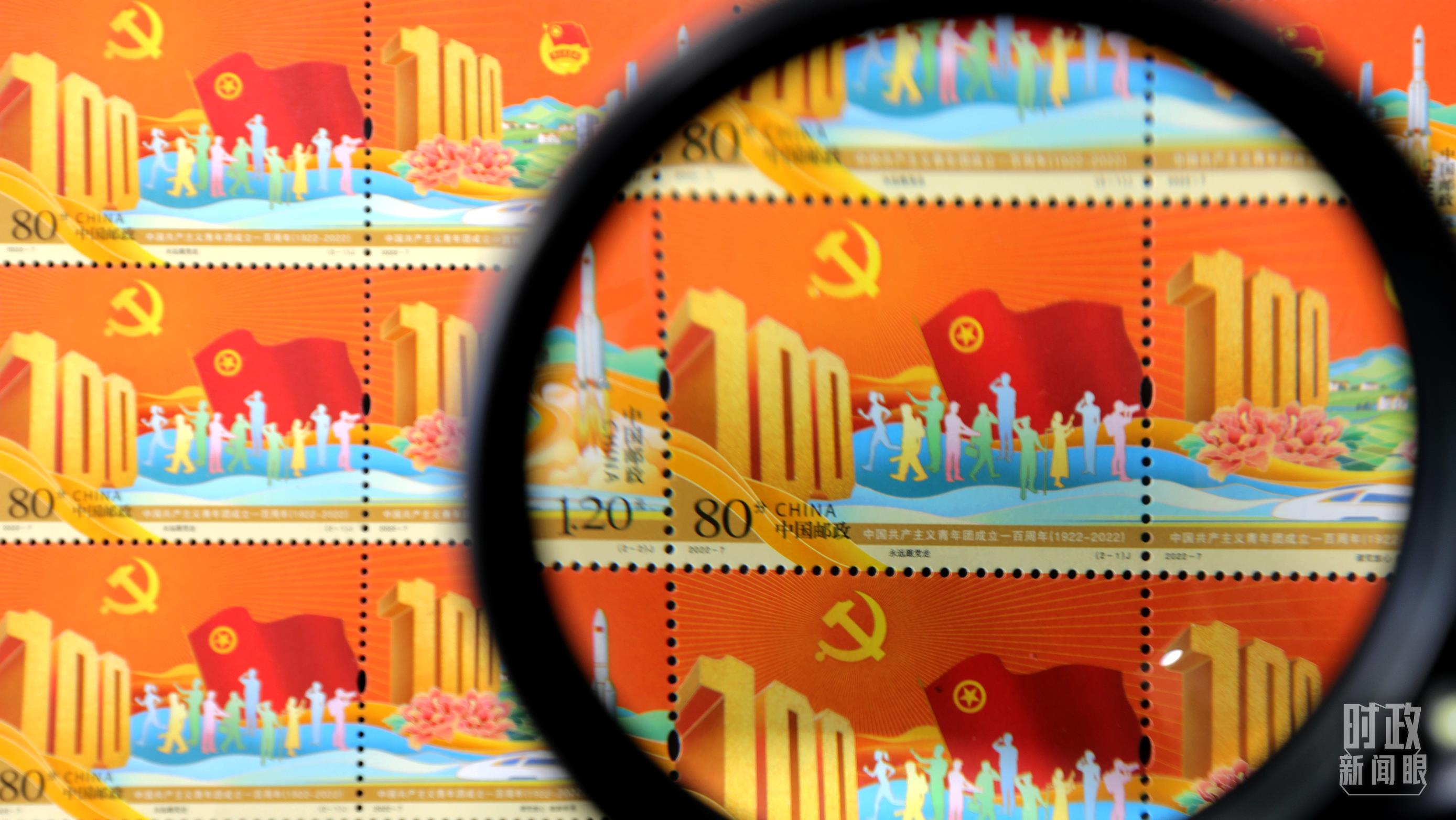 △2022年5月,中國郵政發(fā)行《中國共產(chǎn)主義青年團成立一百周年》紀(jì)念郵票。(圖丨視覺中國)