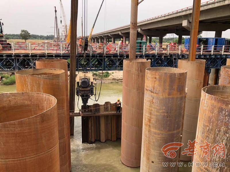 大橋上跨渭河,濕地保護、水土保持及文明施工要求高。華商報記者在現(xiàn)場看到,3號墩施工現(xiàn)場,深基坑需開挖25米深。“我們用的是五層鋼支撐圍檁,3號墩是開挖最深的。”京昆改擴建六標(biāo)段項目書記馬俊說,在河道內(nèi)的1、2號墩,樁基、承臺施工難度大、工序多,3號到7號橋墩承臺在地面以下7-17米,承臺施工深基坑開挖支護風(fēng)險高、難度大。