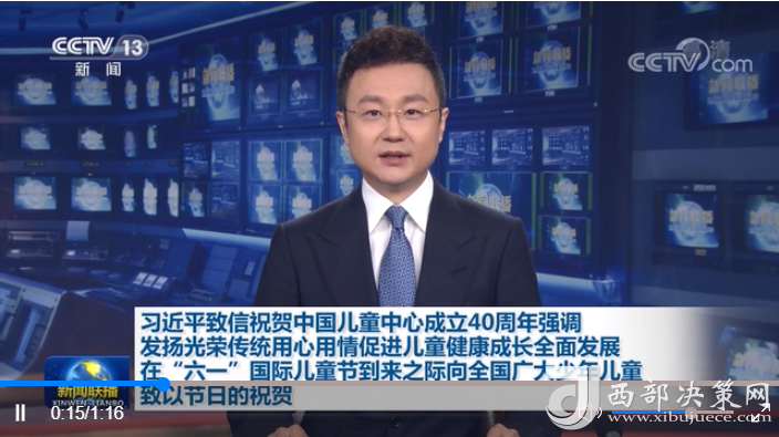 新華社北京5月31日電 在中國兒童中心成立40周年之際,中共中央總書記、國家主席、中央軍委主席習(xí)近平發(fā)來賀信,表示熱烈的祝賀,并在“六一”國際兒童節(jié)到來之際,代表黨中央向全國廣大少年兒童致以節(jié)日的祝賀,祝小朋友們學(xué)習(xí)進步、快樂生活、茁壯成長。