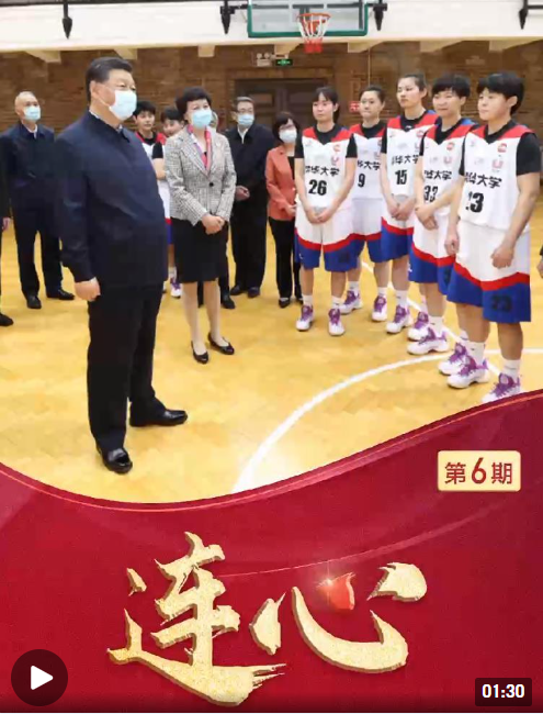 2021年4月19日,習(xí)近平總書記來到清華大學(xué)考察。學(xué)校西體育館內(nèi),正在訓(xùn)練的?;@球運(yùn)動員們見到了他們的“學(xué)長”習(xí)近平。