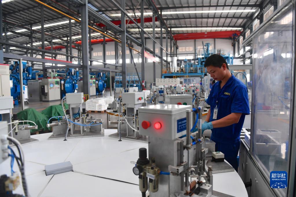 2019年5月20日,江西金力永磁科技股份有限公司的工人在車間內(nèi)工作。 新華社記者 胡晨歡 攝
