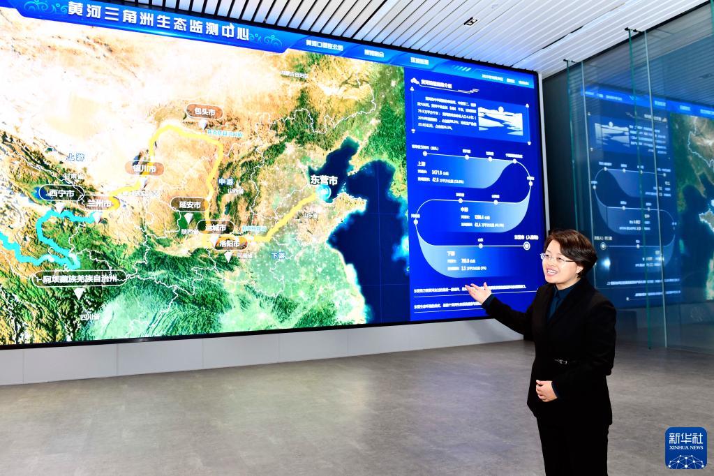 山東黃河三角洲國(guó)家級(jí)自然保護(hù)區(qū)生態(tài)監(jiān)測(cè)中心主任劉靜在介紹相關(guān)情況(2021年10月20日攝)。新華社記者郭緒雷攝