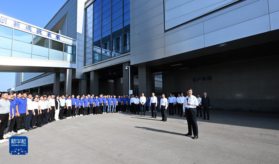 6月8日,中共中央總書記、國家主席、中央軍委主席習(xí)近平在四川考察。這是8日下午,習(xí)近平在宜賓市極米光電有限公司車間外廣場,同企業(yè)員工們親切交流。新華社記者 李學(xué)仁 攝