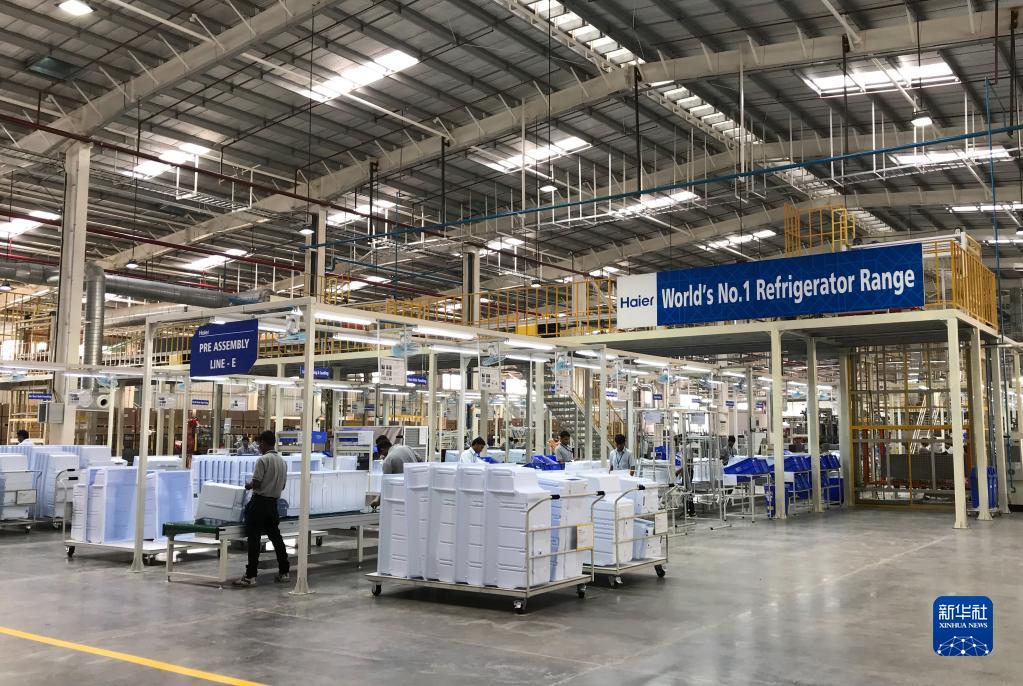 2017年11月16日,在印度浦那市,工人在中國海爾集團(tuán)工業(yè)園廠房內(nèi)工作。新華社記者 張興軍 攝