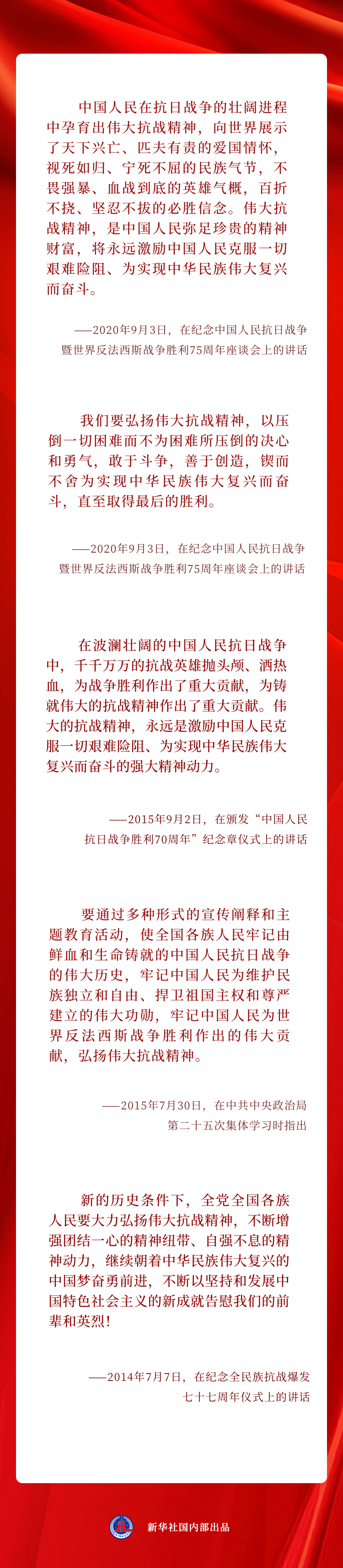 讓我們一起重溫習(xí)近平總書記重要論述,從偉大抗戰(zhàn)精神中汲取力量↓