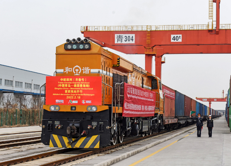 2022年2月18日,中歐班列(齊魯號)中國青島—德國曼海姆雙向?qū)﹂_首班列車從上合示范區(qū)青島多式聯(lián)運(yùn)中心出發(fā)。