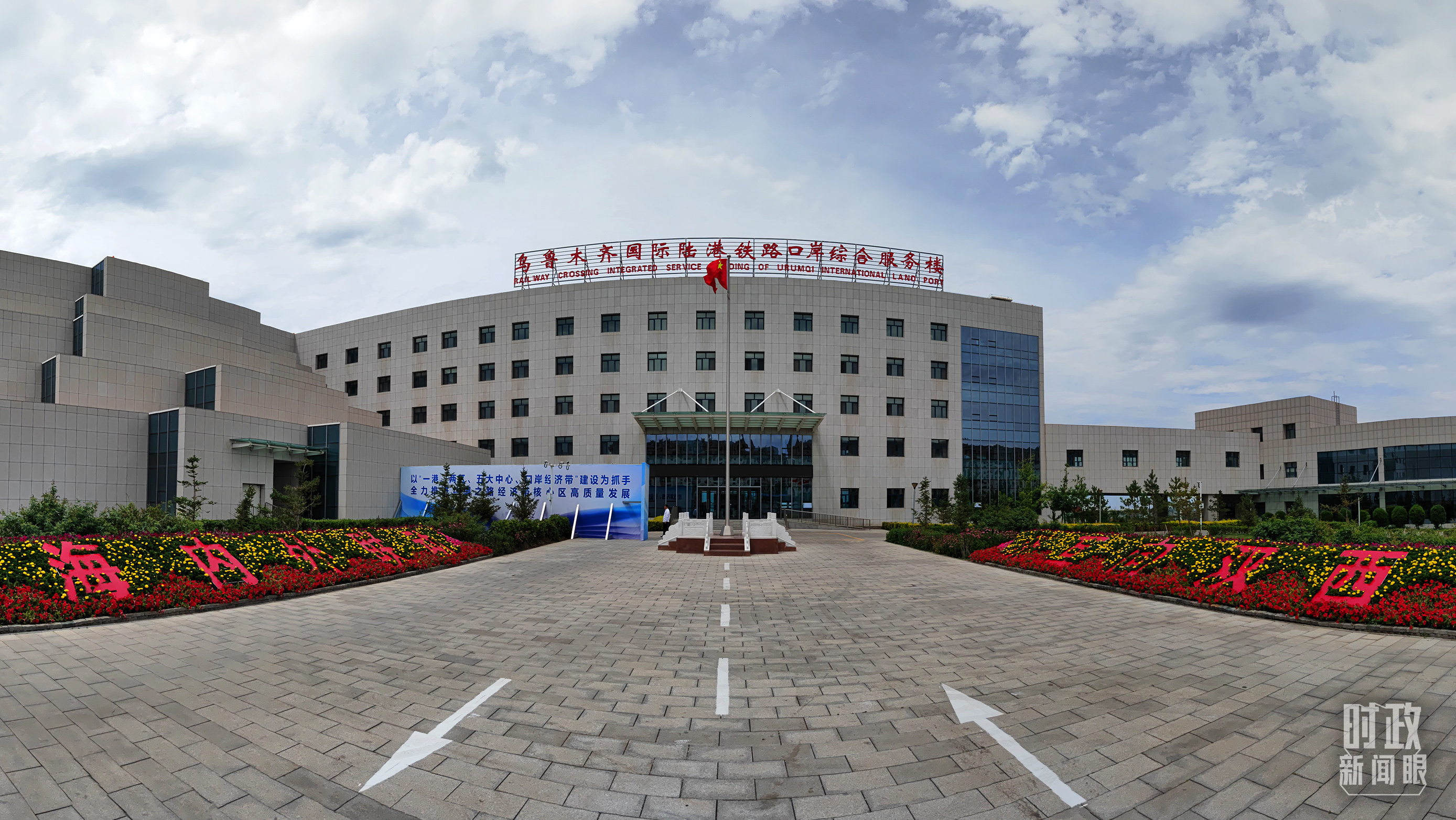 △烏魯木齊國際陸港鐵路口岸綜合服務(wù)樓。(總臺央視記者彭漢明拍攝)