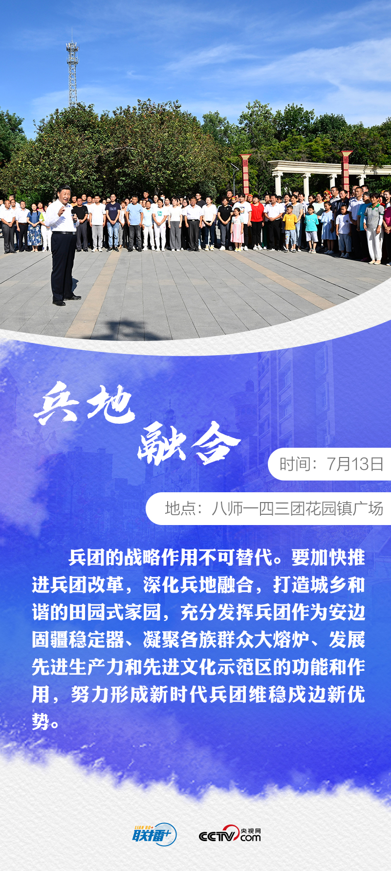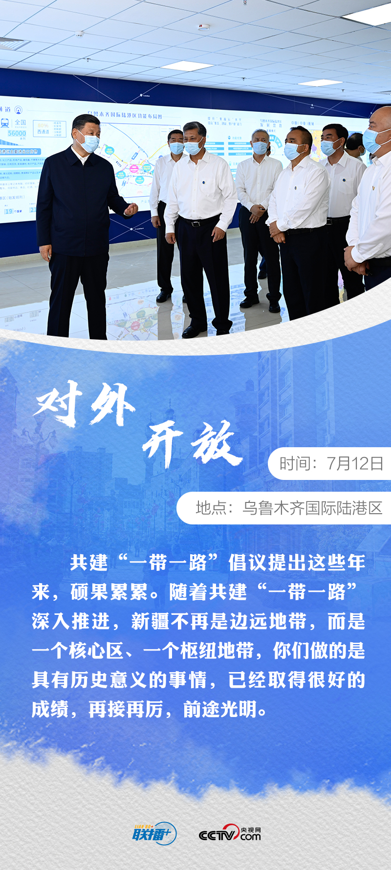 7月12日至15日,習(xí)近平總書記時(shí)隔八年再次考察新疆。他先后來到烏魯木齊、石河子、吐魯番等地,深入學(xué)校、國際陸港區(qū)、社區(qū)、博物館、農(nóng)村和新疆生產(chǎn)建設(shè)兵團(tuán)等進(jìn)行調(diào)研。