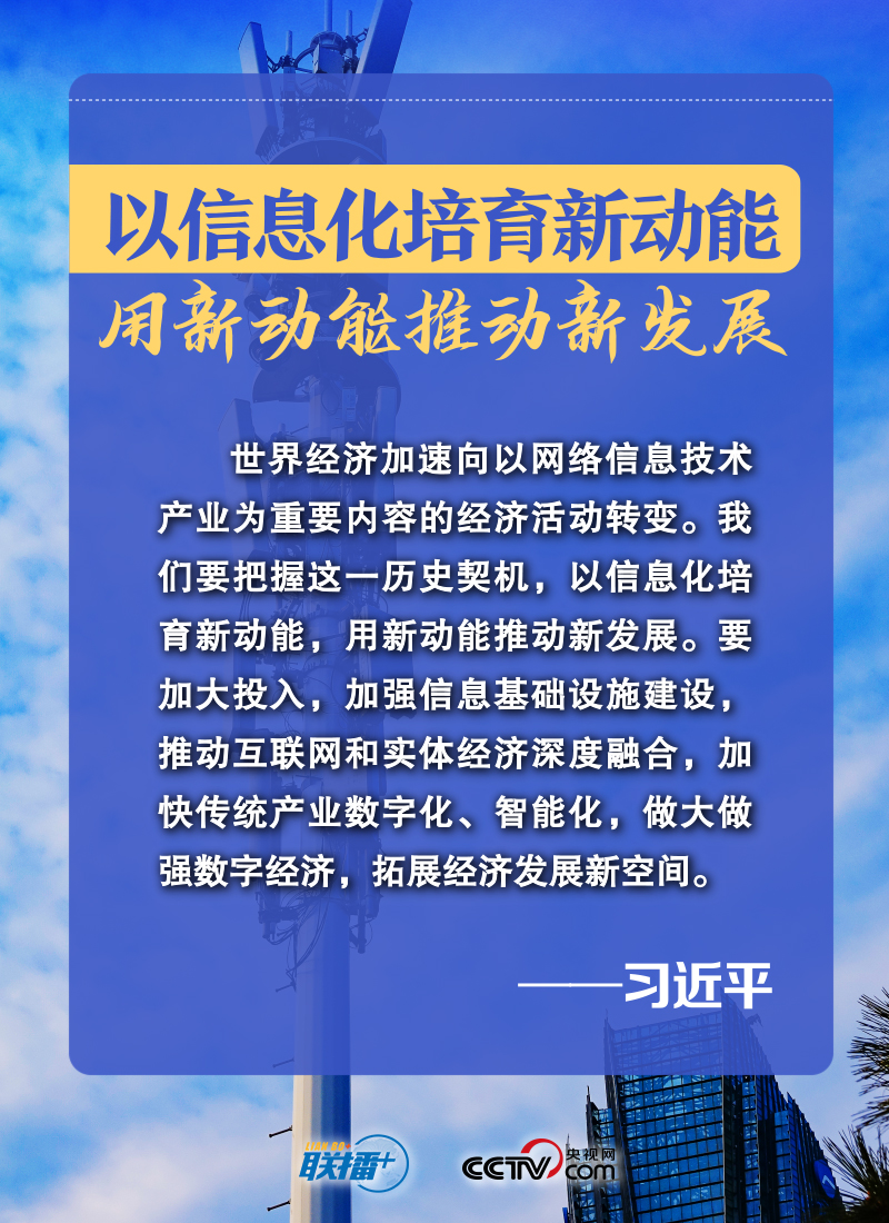 “發(fā)展數(shù)字經(jīng)濟(jì)意義重大,是把握新一輪科技革命和產(chǎn)業(yè)變革新機(jī)遇的戰(zhàn)略選擇。”黨的十八大以來,以習(xí)近平同志為核心的黨中央高度重視發(fā)展數(shù)字經(jīng)濟(jì),將其上升為國家戰(zhàn)略。央視網(wǎng)《聯(lián)播+》梳理習(xí)近平總書記關(guān)于做強(qiáng)做優(yōu)做大我國數(shù)字經(jīng)濟(jì)的重要論述,與您一起學(xué)習(xí)。