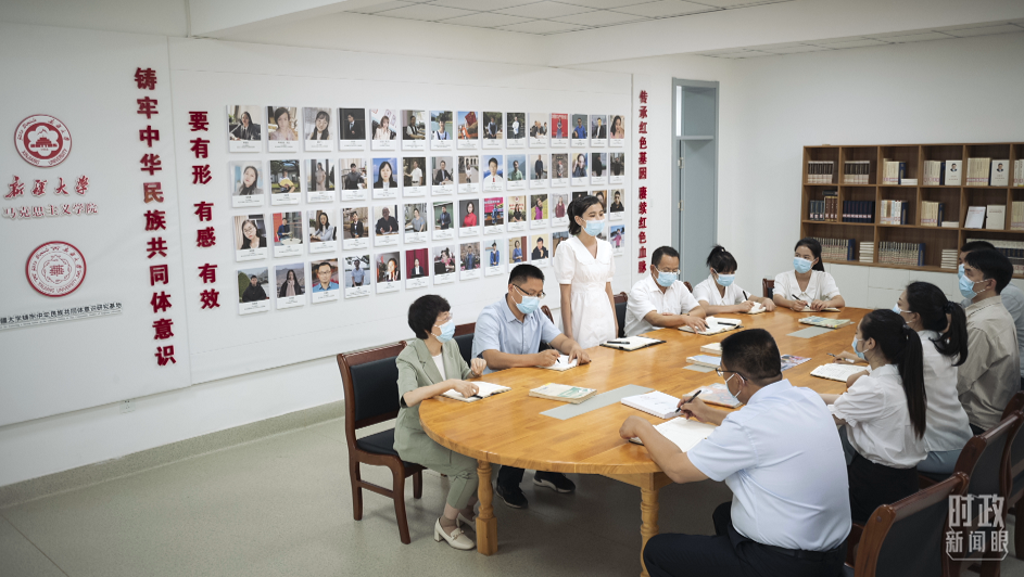 △新疆大學,鑄牢中華民族共同體意識研究基地的討論現(xiàn)場。(總臺央視記者王哈男拍攝)