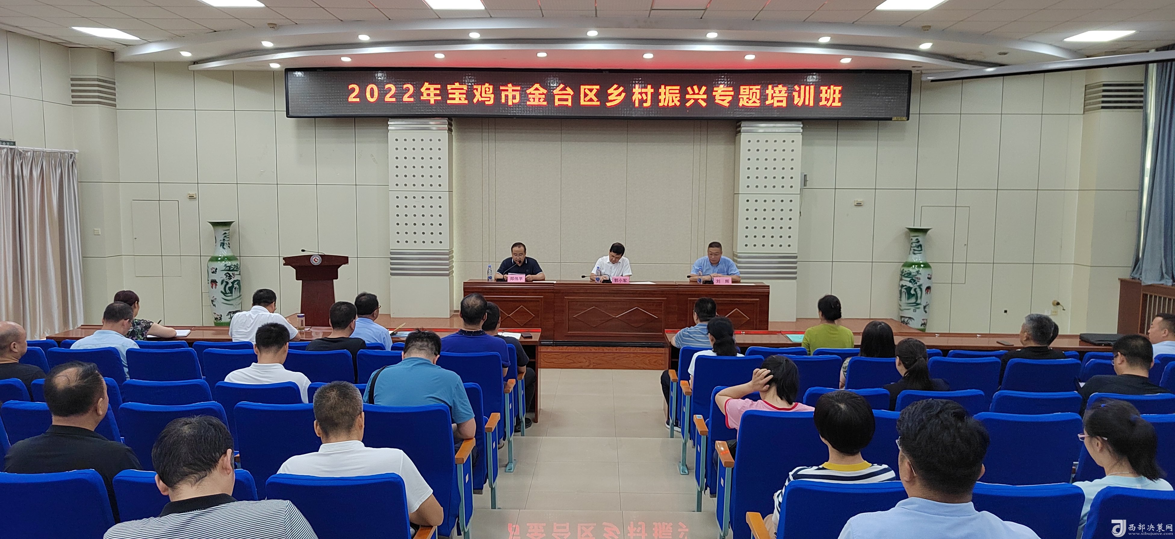 西部決策網(wǎng)訊 8月6日下午,為期三天的“2022年寶雞市金臺區(qū)鄉(xiāng)村振興專題培訓(xùn)班”結(jié)束了!60余學(xué)員順利的拿到了結(jié)業(yè)證。寶雞文理學(xué)院經(jīng)濟管理學(xué)院院長、陜西鄉(xiāng)村振興研究中心主任劉輝;金臺區(qū)政府副區(qū)長郭小軍出席了結(jié)業(yè)儀式。參加結(jié)業(yè)儀式的還有金臺區(qū)鄉(xiāng)村振興局主要負(fù)責(zé)人、分管領(lǐng)導(dǎo),各鎮(zhèn)涉農(nóng)街道黨(工)委書記和鄉(xiāng)村振興工作分管領(lǐng)導(dǎo),區(qū)委實施鄉(xiāng)村振興戰(zhàn)略領(lǐng)導(dǎo)小組和區(qū)委抓黨建促鄉(xiāng)村振興領(lǐng)導(dǎo)小組各成員單位分管領(lǐng)導(dǎo)。結(jié)業(yè)儀式由金臺區(qū)鄉(xiāng)村振興局局長鄭偉平主持。