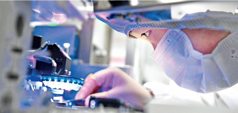 華工科技的科研人員在檢查微小部件。