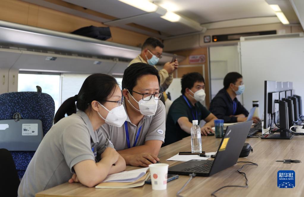 8月23日,工作人員在彌蒙高鐵綜合檢測(cè)車(chē)內(nèi)工作。新華社發(fā)(何呂鵬 攝)