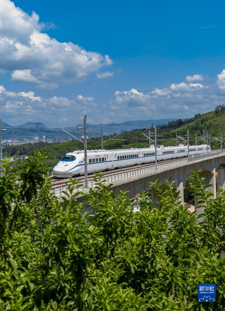 8月23日,綜合檢測(cè)車(chē)通過(guò)彌蒙高鐵南洞3號(hào)特大橋。新華社發(fā)(吳宇 攝)