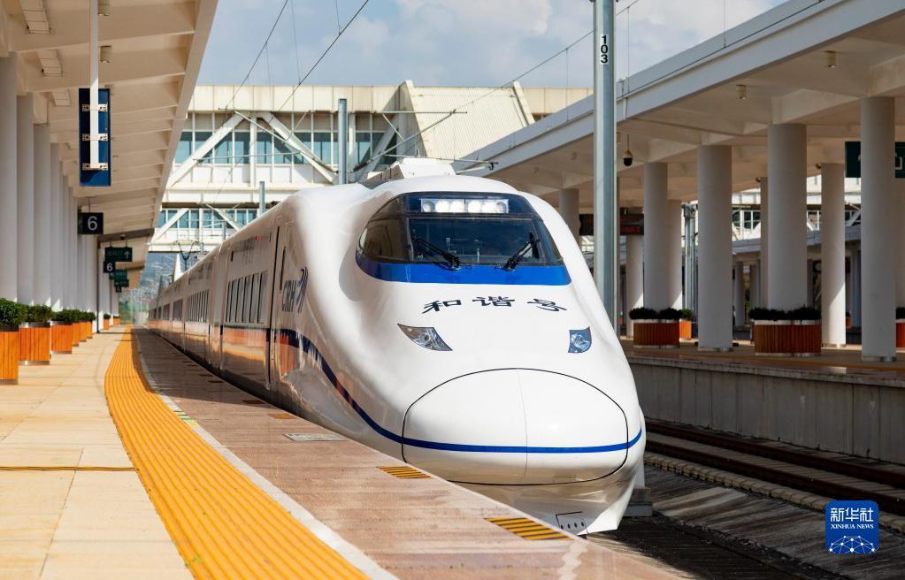 8月23日,綜合檢測(cè)車(chē)駛出彌蒙高鐵彌勒站。新華社發(fā)(周濤 攝)