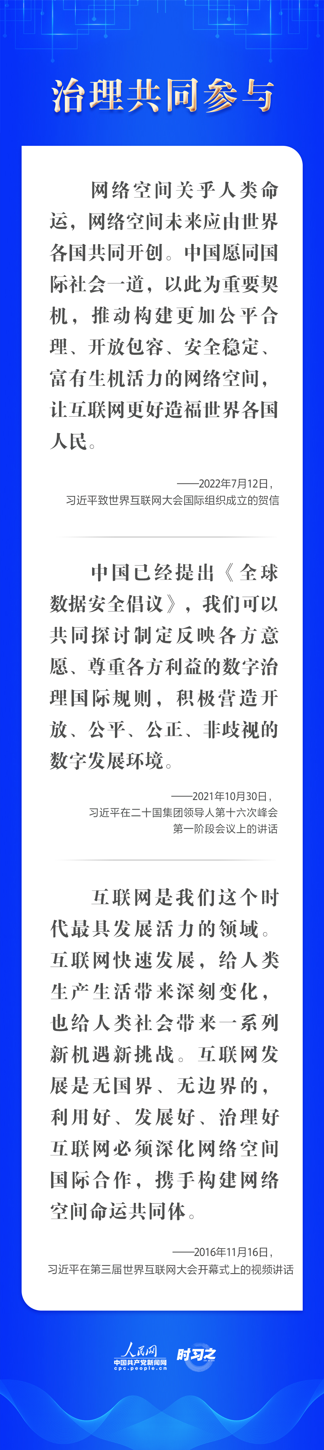 “網絡空間關乎人類命運,網絡空間未來應由世界各國共同開創(chuàng)。”中共中央總書記、國家主席、中央軍委主席習近平一直高度重視網絡強國建設,提出構建網絡空間命運共同體的重要理念,倡導“發(fā)展共同推進、安全共同維護、治理共同參與、成果共同分享”,讓互聯(lián)網更好造福世界各國人民。