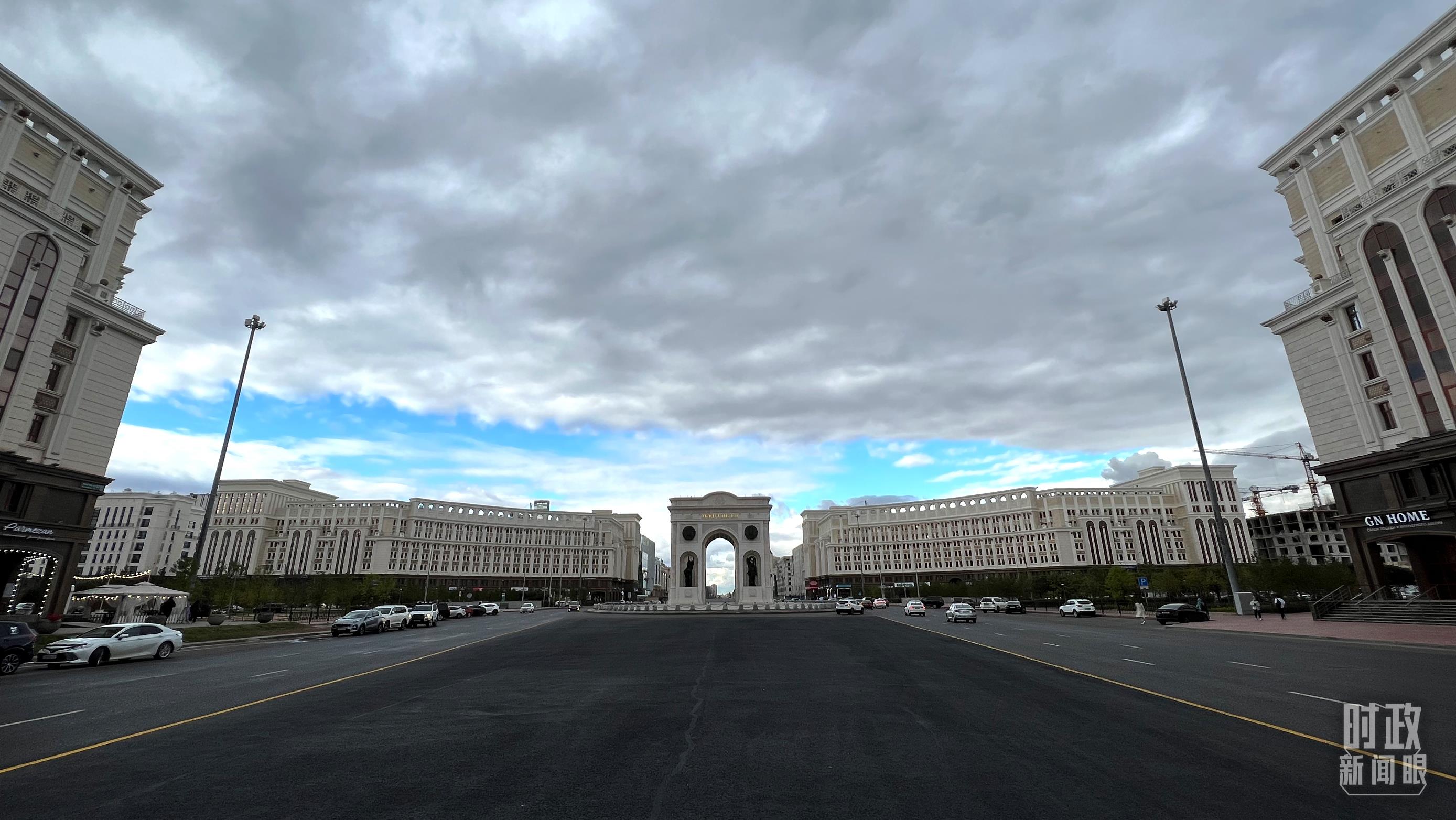 △位于哈薩克斯坦首都的凱旋門。(總臺(tái)央視記者魏子鈞拍攝)