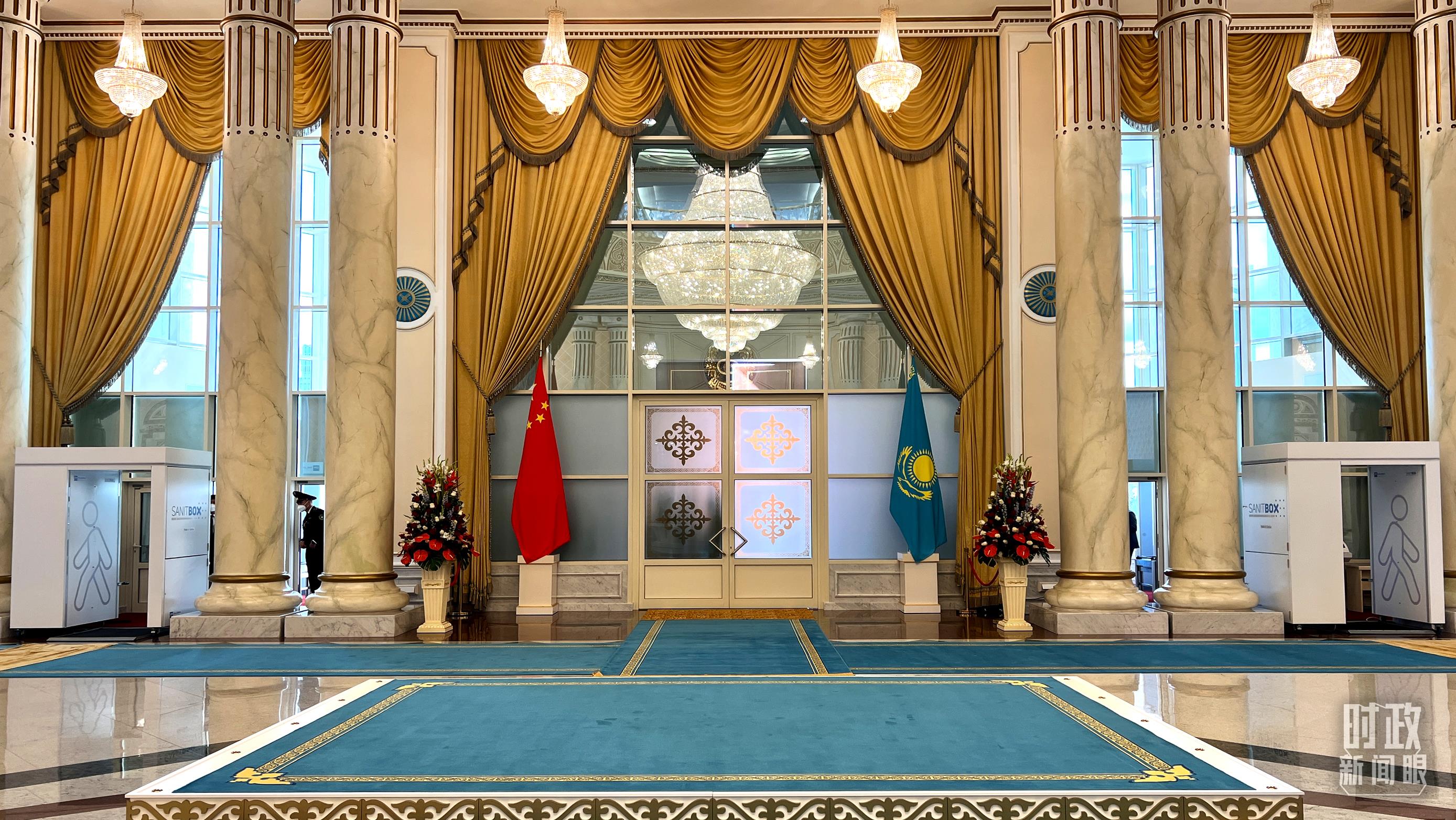 △精心布置的歡迎儀式大廳。(總臺(tái)央視記者郁振一拍攝)