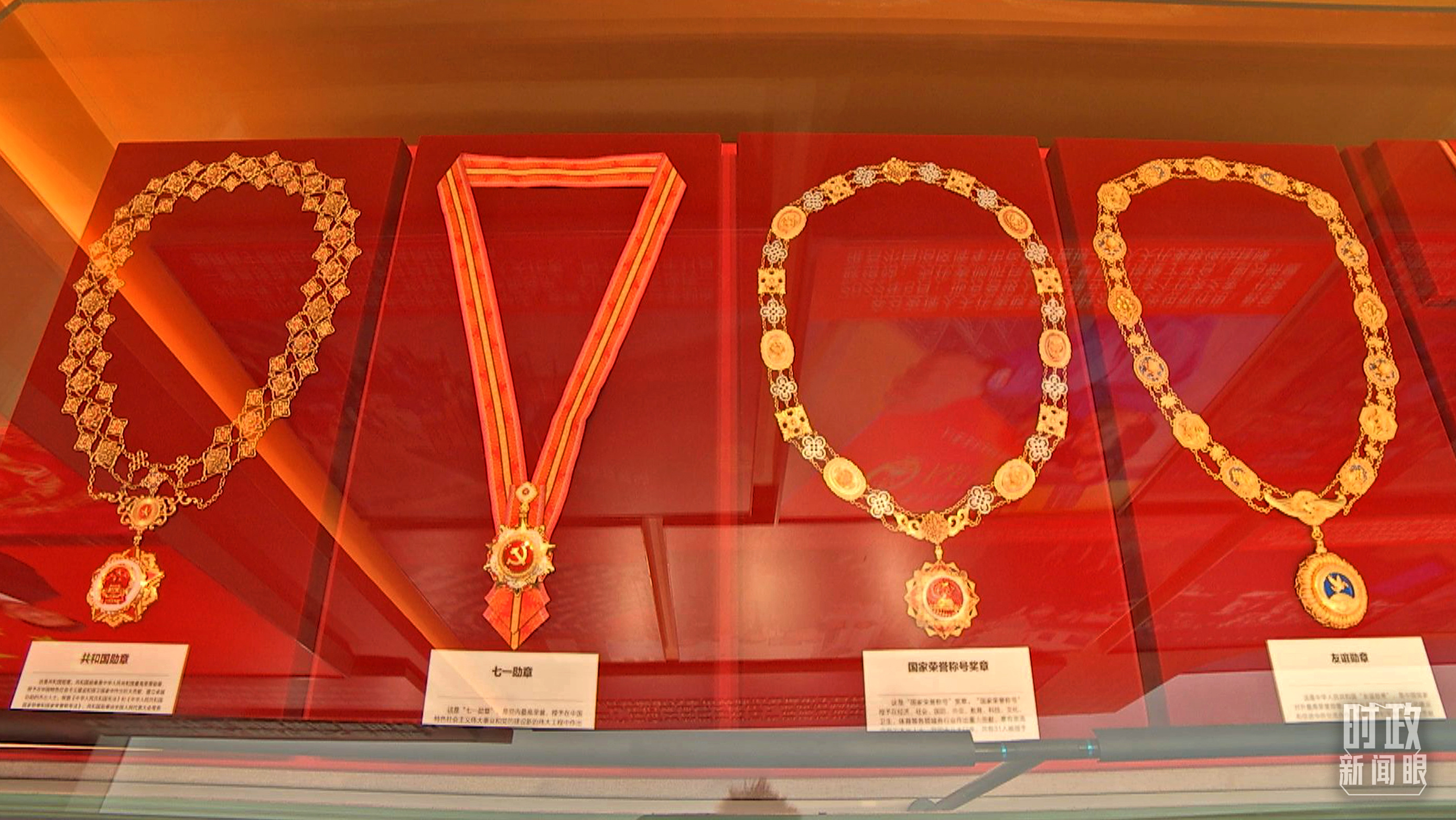 △ 從左至右依次是共和國勛章、七一勛章、國家榮譽稱號獎章、友誼勛章。(總臺央視記者彭漢明拍攝)