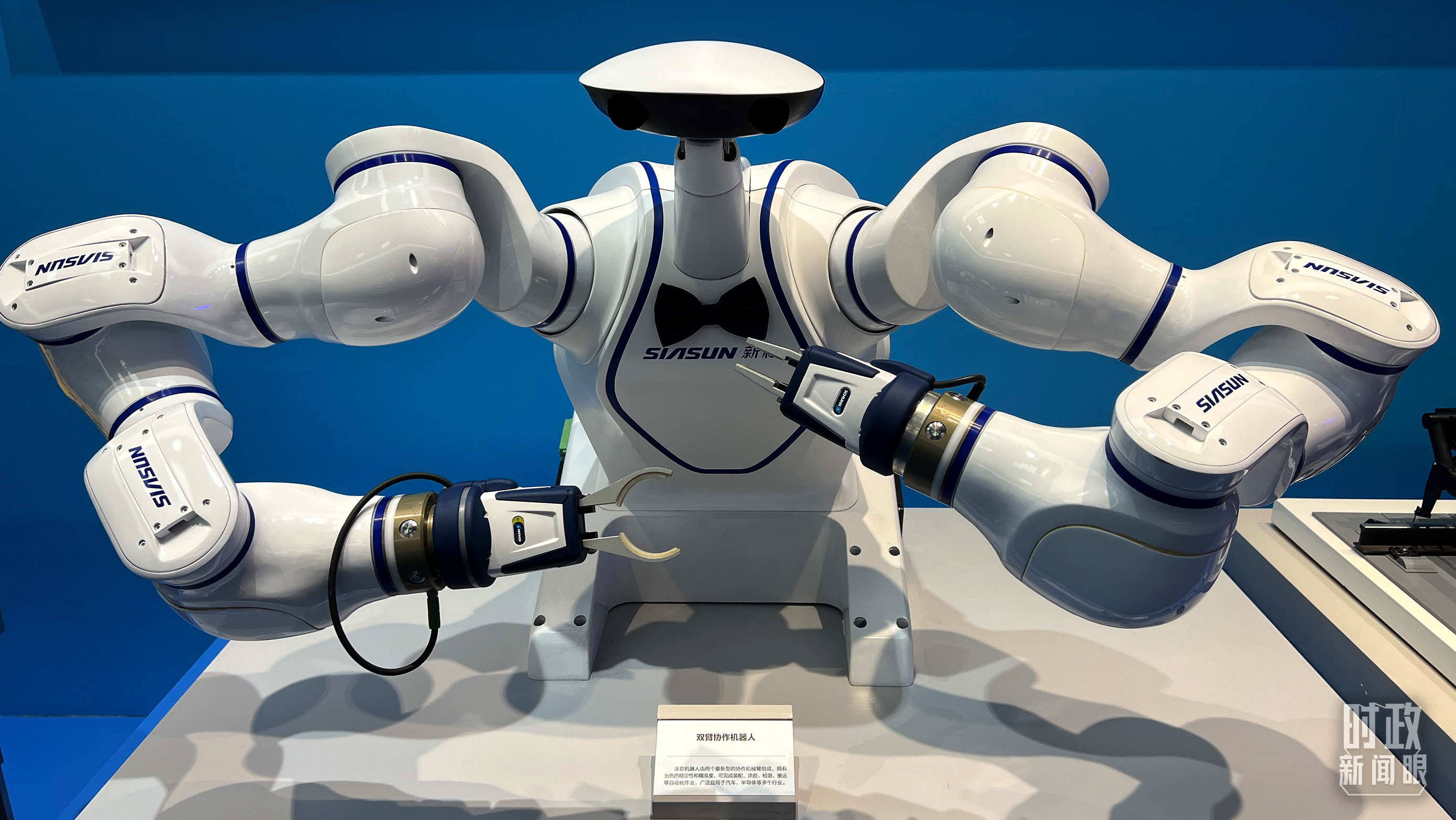 △ 雙臂協(xié)作機器人,可完成裝配、涂膠、檢測、搬運等自動化作業(yè)。(總臺央視記者趙化拍攝)