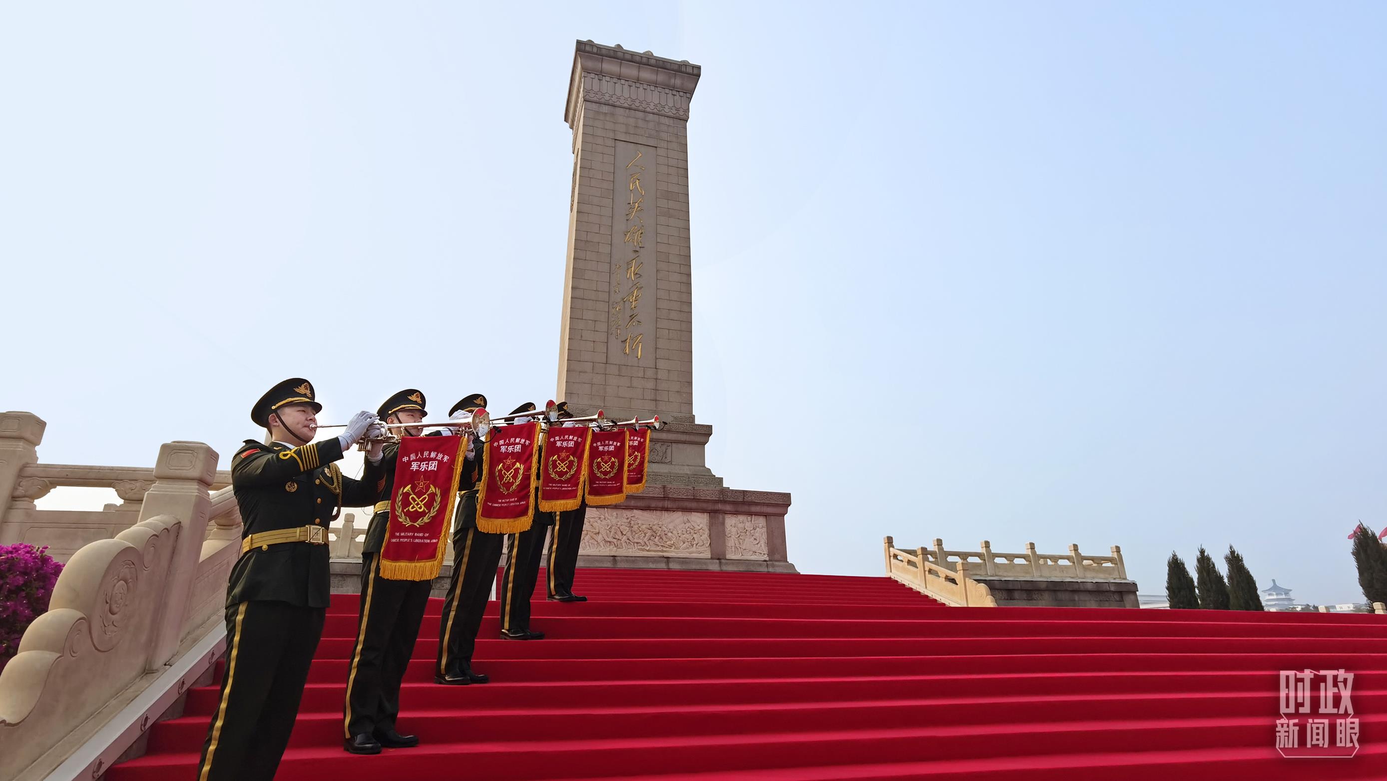△儀式現(xiàn)場的軍樂團(tuán)小號(hào)手,當(dāng)天的《烈士紀(jì)念日號(hào)角》由他們吹響。(總臺(tái)央視記者郭鴻拍攝)