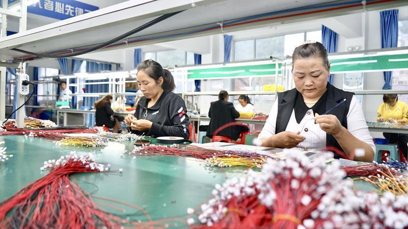 9月27日,走進位于安康市漢濱區(qū)譚壩鎮(zhèn)松壩社區(qū)工廠二樓寬敞明亮的車間,工人們正熟練地進行電子線束生產(chǎn)流程的各項工作。記者 周恒宇攝