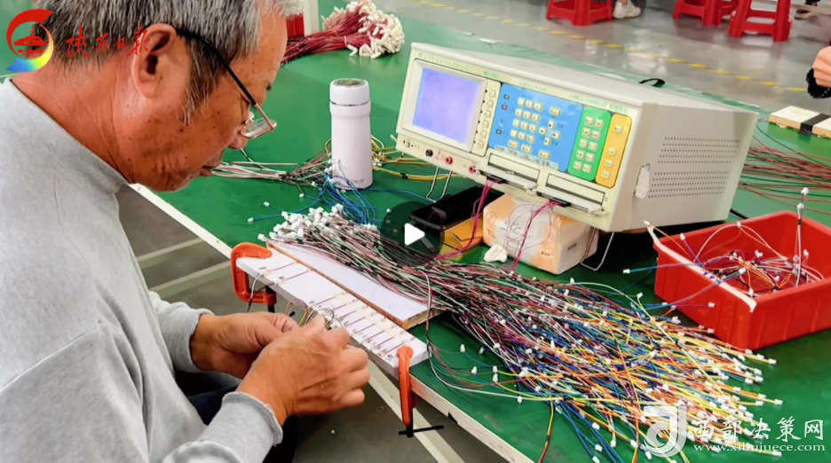 9月27日,譚壩鎮(zhèn)松壩社區(qū)。在安康歐利科精密電子科技有限公司新社區(qū)工廠寬敞明亮的車間里,工人們正熟練地進行著電子線束生產(chǎn)流程的各項工作,隨處可見紅綠黃黑各種顏色的電子線束。隨著檢測設(shè)備顯示“良品”,一根根連接合格的電子線束“奔”向下一道工序。