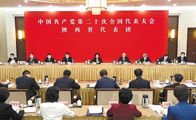 10月18日,黨的二十大陜西省代表團召開會議,認真討論十九屆中央紀委工作報告和黨章修正案。 記者 母家亮攝
