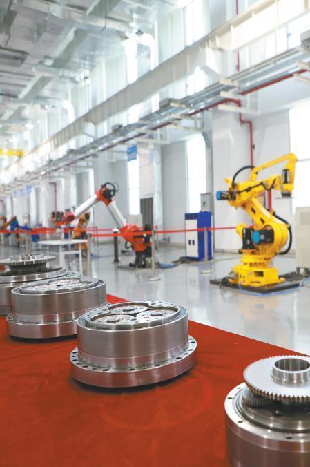 一臺黃色的機器人輕輕抬起“手臂”,把兩個擁有“巨大牙齒”的金屬塊嚴絲合縫地合在一起。機器人“手臂”能活動自如,取決于健康的“關(guān)節(jié)”。關(guān)節(jié)減速器是機器人“手臂”的核心零部件,它可以幫助機器人提升抓取精度,提高承載力。