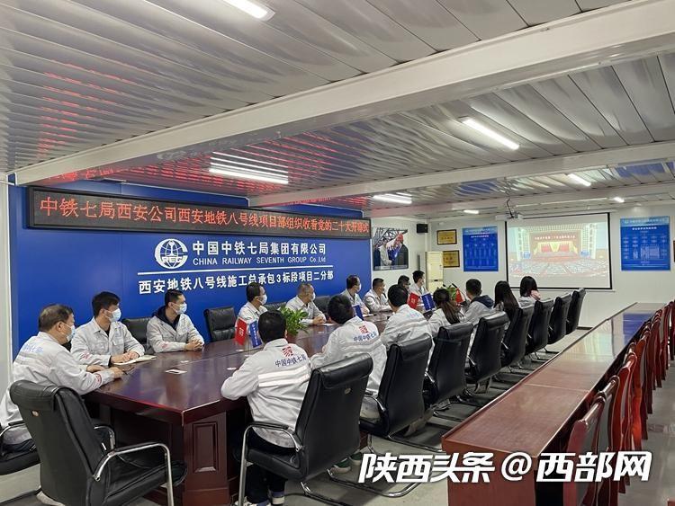 中鐵七局西安地鐵八號線項目部收看黨的二十大開幕會。