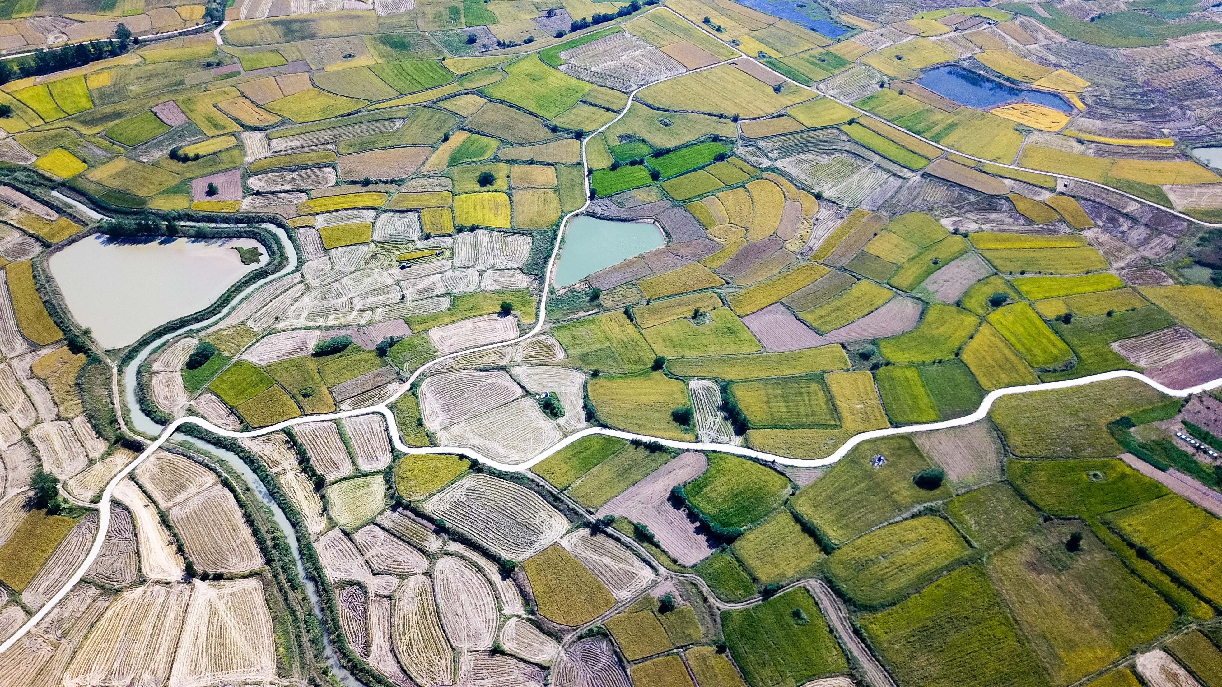 安徽省鳳陽縣小崗村的田野景象(2018年9月27日攝,無人機(jī)照片)。新華社記者 張端 攝