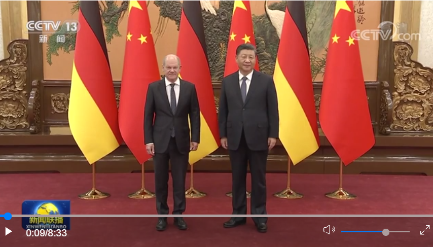 習(xí)近平指出,你是中共二十大召開后首位來訪的歐洲領(lǐng)導(dǎo)人,這也是你就任以來首次訪華。相信訪問將增進(jìn)雙方了解和互信,深化各領(lǐng)域務(wù)實合作,為下階段中德關(guān)系發(fā)展做好謀劃。
