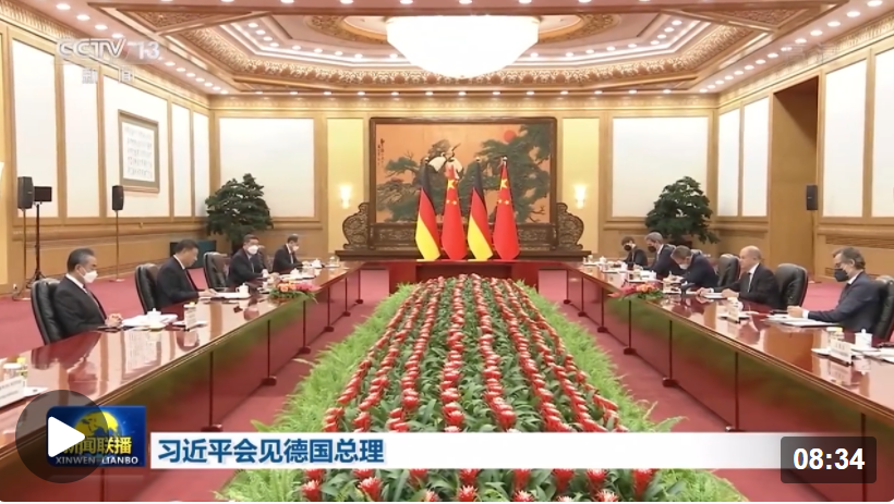 習(xí)近平指出,你是中共二十大召開后首位來訪的歐洲領(lǐng)導(dǎo)人,這也是你就任以來首次訪華。相信訪問將增進(jìn)雙方了解和互信,深化各領(lǐng)域務(wù)實(shí)合作,為下階段中德關(guān)系發(fā)展做好謀劃。