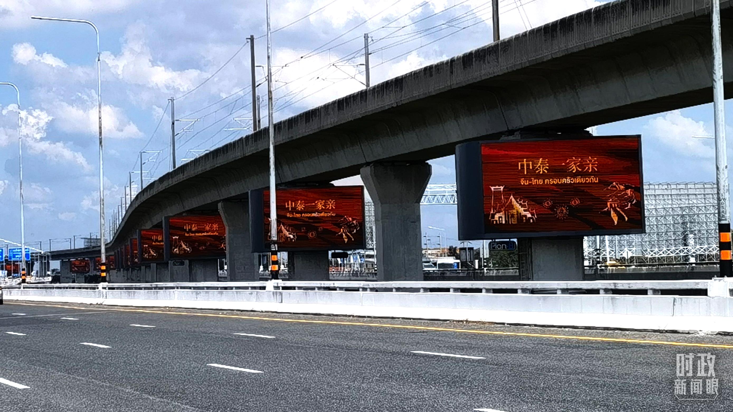 △曼谷街道,巨幅電子屏用中泰文字寫著“中泰一家親”。(總臺(tái)央視記者馬超拍攝)