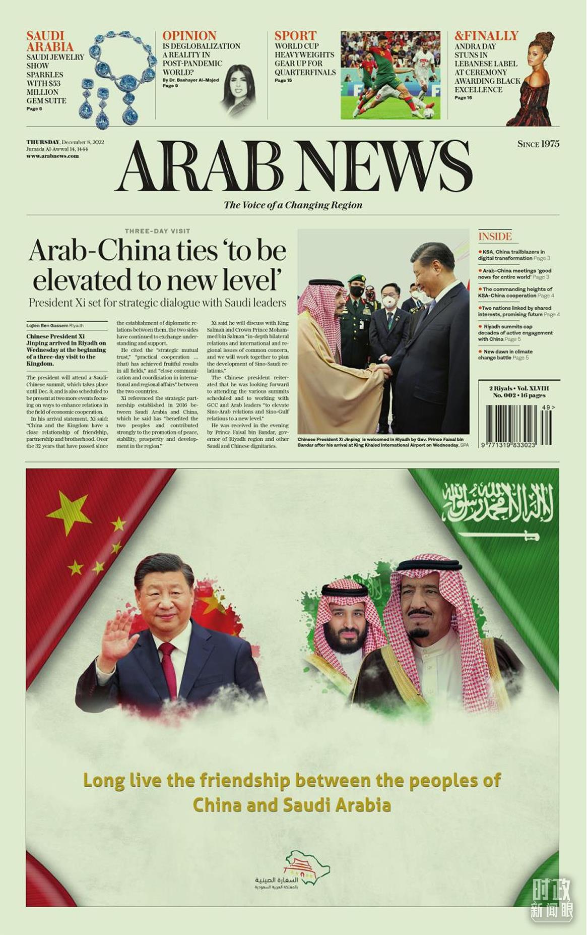 △沙特主流媒體頭版對習(xí)主席訪沙進(jìn)行報(bào)道。