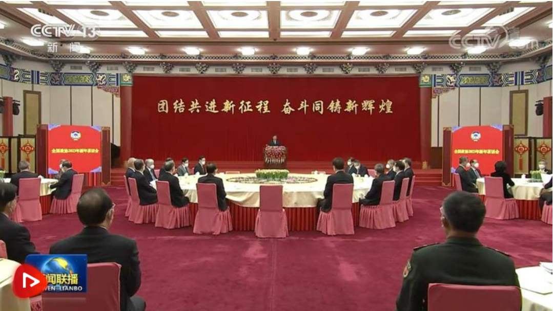 中國人民政治協(xié)商會議全國委員會12月30日上午在全國政協(xié)禮堂舉行新年茶話會。黨和國家領導人習近平、李克強、栗戰(zhàn)書、汪洋、李強、趙樂際、王滬寧、蔡奇、丁薛祥、李希、王岐山等同各民主黨派中央、全國工商聯(lián)負責人和無黨派人士代表、中央和國家機關有關方面負責人以及首都各族各界人士代表歡聚一堂,共迎2023年元旦。