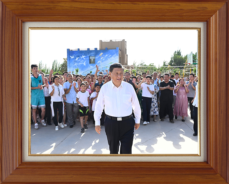 7月14日,習(xí)近平總書記在新疆吐魯番市高昌區(qū)亞爾鎮(zhèn)新城片區(qū)新城西門村考察時,同各族群眾在一起。