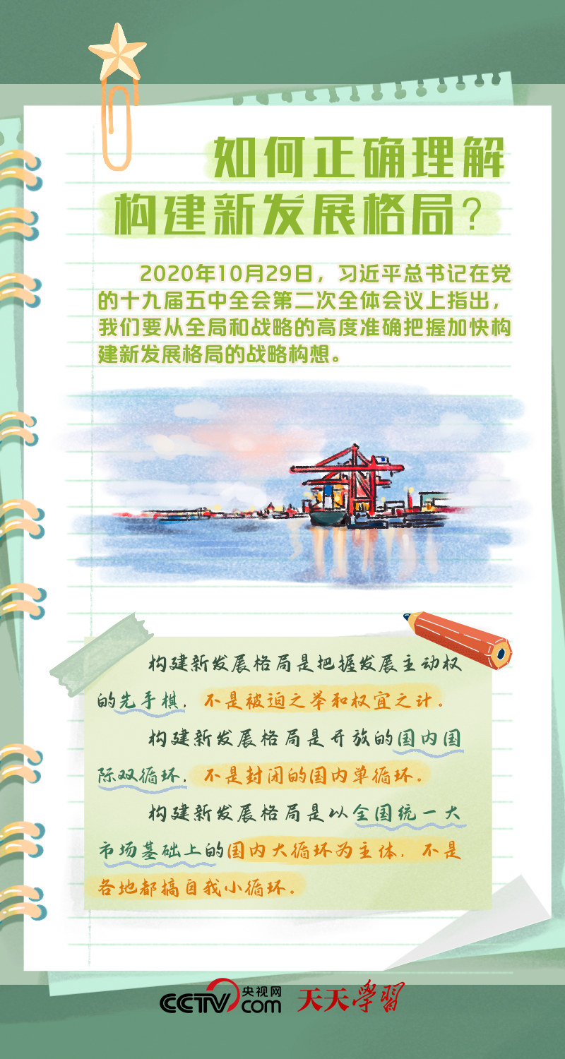 天天學(xué)習(xí) 構(gòu)建以國內(nèi)大循環(huán)為主體、國內(nèi)國際雙循環(huán)相互促進(jìn)的新發(fā)展格局,是根據(jù)我國發(fā)展階段、環(huán)境、條件變化,特別是基于我國比較優(yōu)勢變化,審時度勢作出的重大決策。構(gòu)建新發(fā)展格局是事關(guān)全局的系統(tǒng)性、深層次變革,是立足當(dāng)前、著眼長遠(yuǎn)的戰(zhàn)略謀劃。